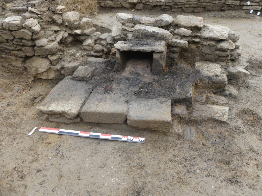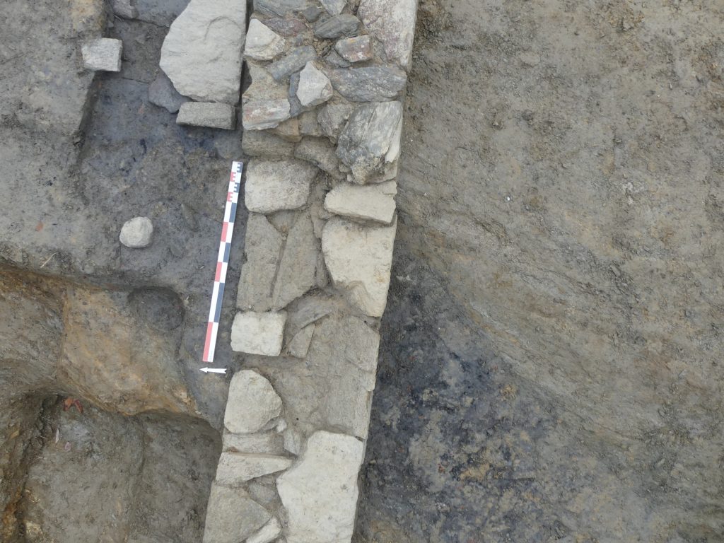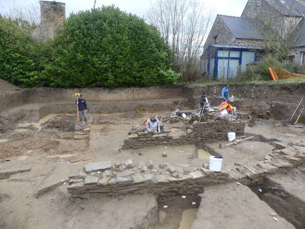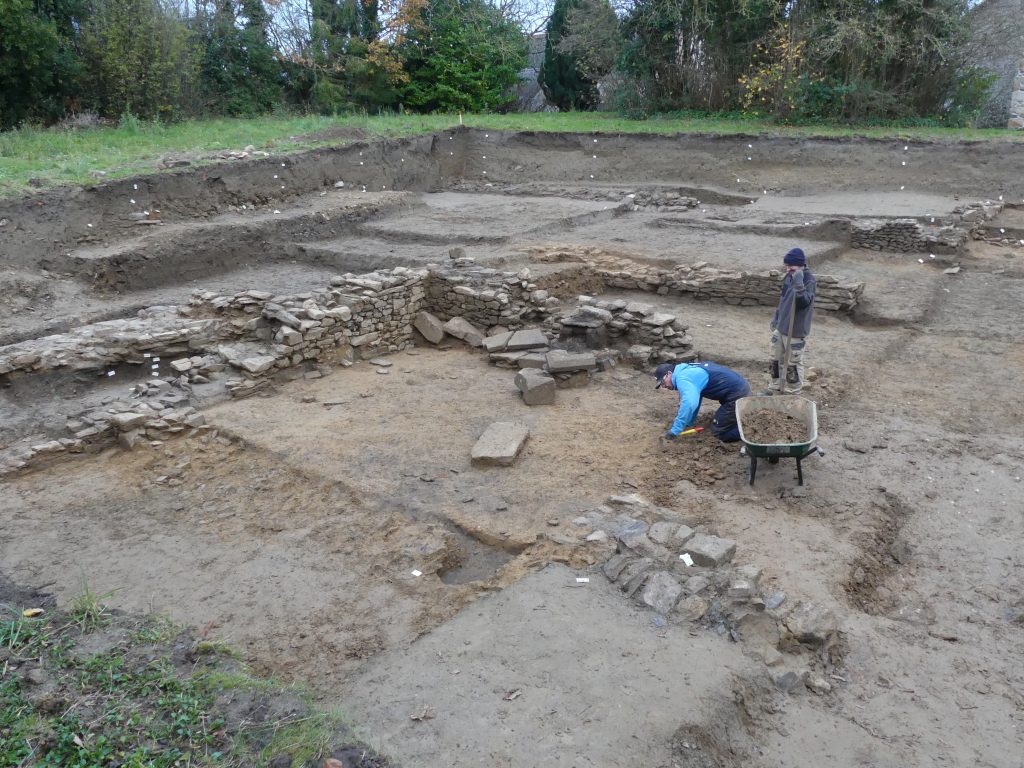 Lors de l’opération, l’étude s’est alors concentrée sur la vie domestique au sein d’une basse-cour seigneuriale, puis d’un manoir et de ses dépendances aux abords d’une collégiale. Un regard a aussi été porté sur les destructions et la reconversion en jardin de l’emprise, lorsqu’un hameau s’est formé autour du presbytère avec de nouveaux bâtiments domestiques au 19e siècle.