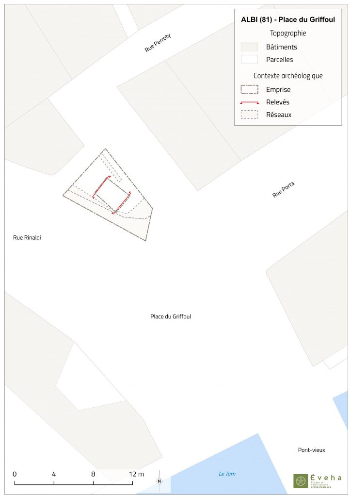 Les fouilles archéologiques menées sur le site de Albi (81) – Place du Griffoul ont été réalisées par le bureau d’études Éveha sous la responsabilité de Joris Moron dans le cadre du projet d’aménagement porté par Communauté d’agglomération de l’Albigeois. Les investigations archéologiques ont permis de mettre au jour des vestiges datés de l’Époque moderne et de l’époque contemporaine.