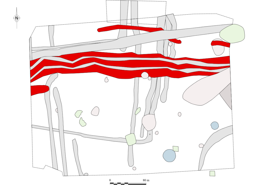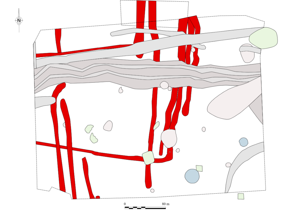 Le potentiel archéologique du secteur du Clos Macé à Rieux avait été révélé par une série de diagnostics et de sondages qui avaient mis en évidence la présence d’un quartier artisanal et d’une nécropole. C’est dans ce cadre qu’un diagnostic archéologique a été réalisé en 2023 par S. Le Berre (Inrap) qui a permis de mettre au jour une occupation antique sur les parcelles concernées. Si les vestiges à l’ouest étaient relativement conséquents, comprenant une stratigraphie complexe, des solins empierrés, ainsi que plusieurs niveaux de sols et de circulation, la fouille prescrite se trouvait sur une zone de densité moindre en vestiges. Selon projets d’aménagement, une seconde fouille pourrait donc avoir lieu dans les prochaines années afin de révéler les vestiges situés sur la zone ouest.
