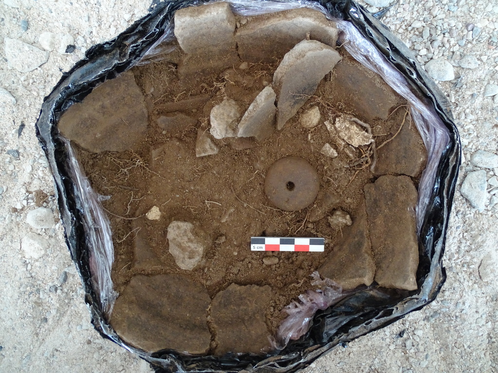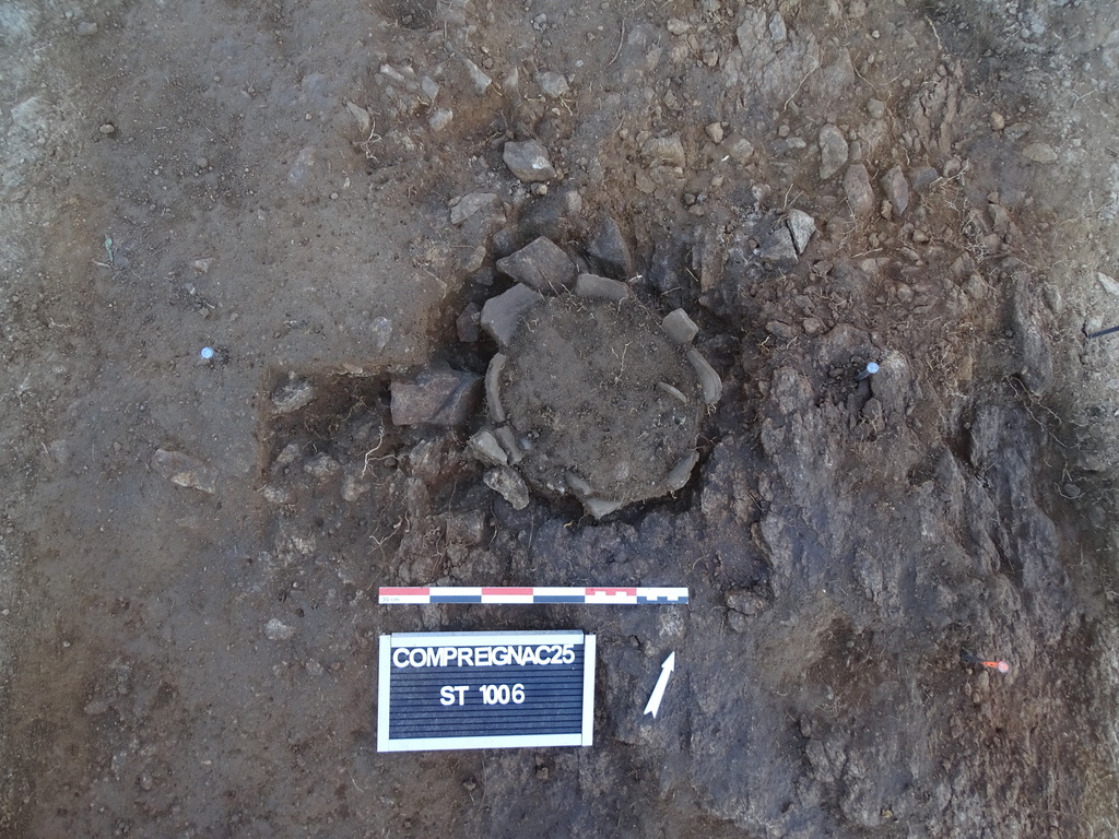 Lors du diagnostic, des urnes funéraires antiques avaient été observées. Or, en Limousin, seules deux nécropoles à incinération sont aujourd’hui connues en Limousin. Cependant, l’étude des pratiques et des structures funéraires a été remise en avant avec la thèse d’Erwan Nivez. Son corpus recense un grand nombre de sépultures à incinération réparties sur l’ensemble du territoire, mais il s’agit le plus souvent de vestiges isolés ou hors contexte, comme notamment un grand nombre de coffres en granite accrochés par les labours depuis deux ou trois siècles.
