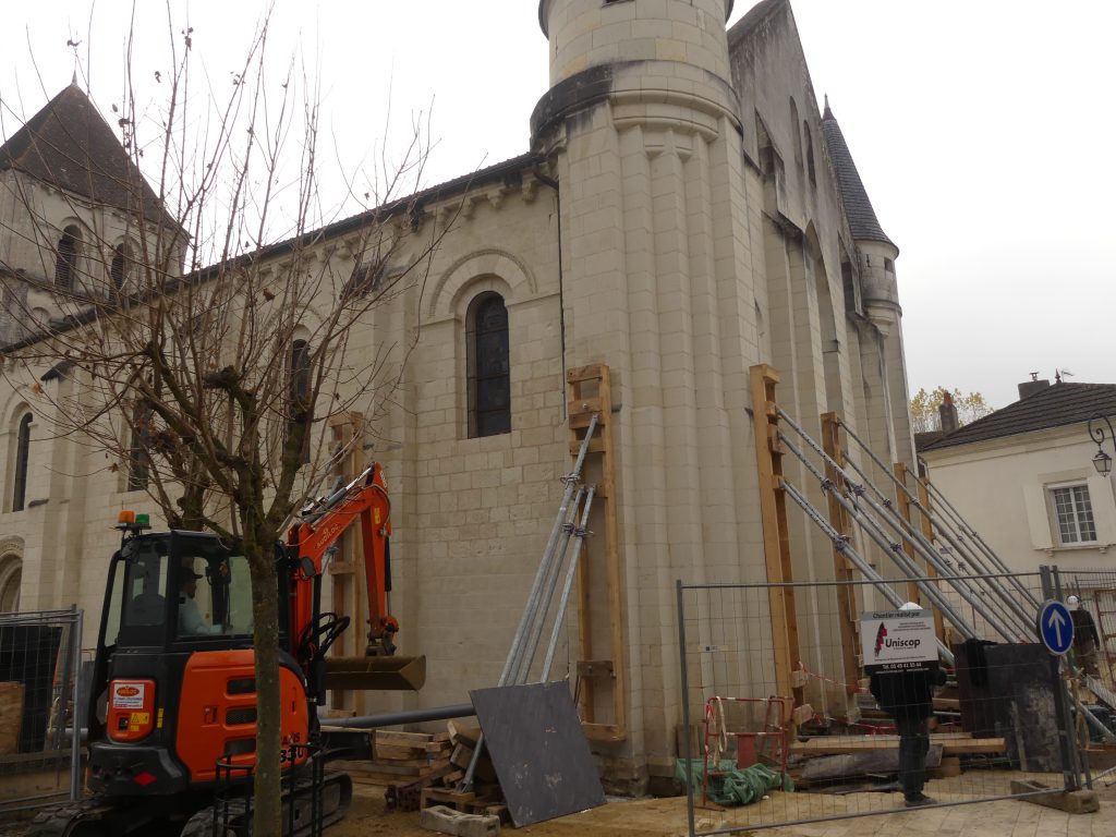 Les travaux au sein de l’église Notre-Dame portaient sur la restauration et la mise en valeur de la travée occidentale de la nef et du chevet ainsi que le rétablissement de la stabilité de l’édifice par des travaux de reprise en sous-œuvre et des consolidations des maçonneries.