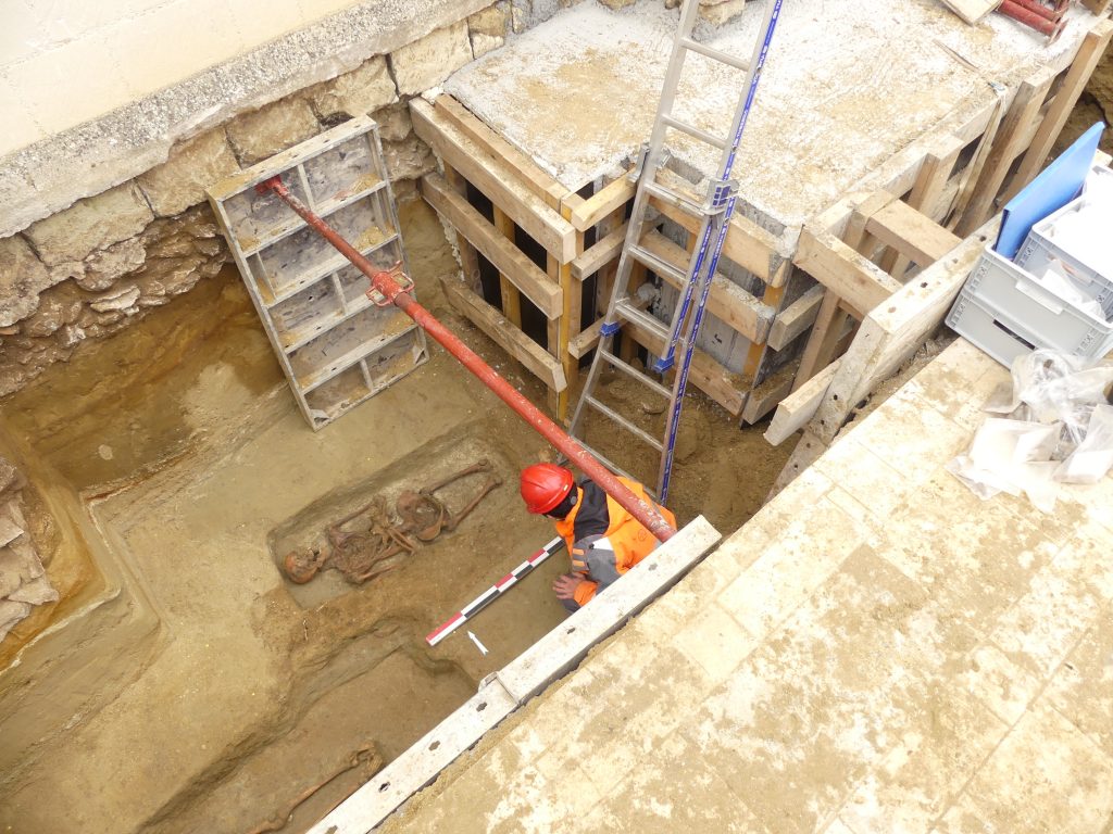 Dès la fin de l’opération, une part importante du processus de post-fouille sera consacrée aux problématiques anthropologiques dont l’objectif sera de caractériser tant les individus que les populations inhumées. Pour ce faire, l’anthropologue déterminera a minima l’âge de décès, le sexe et les éventuelles pathologies les plus caractéristiques des défunts. Au terme de l’étude, des analyses radiommétriques (14C AMS) viendront affiner la chronologie d’évolution de l’occupation funéraire.