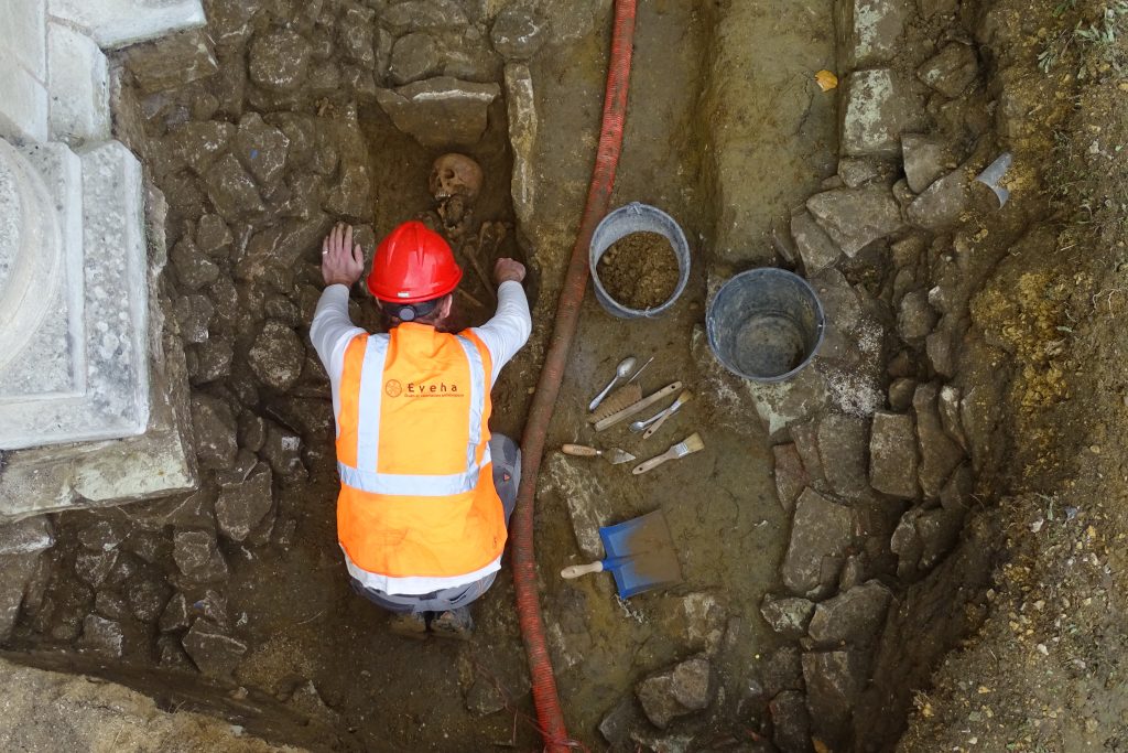 Les fouilles archéologiques menées sur le site de Lencloitre (86) – Église Notre-Dame, place du Doyen Petit ont été réalisées par le bureau d’études Éveha, sous la responsabilité de Paul Butaud, dans le cadre du projet d’aménagement porté par la Mairie de Lencloître. Les investigations archéologiques ont permis de mettre au jour des vestiges datés du Moyen Âge et des époques moderne et contemporaine.
