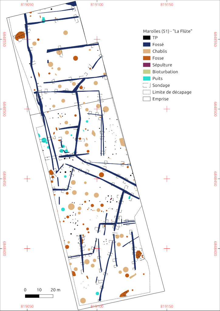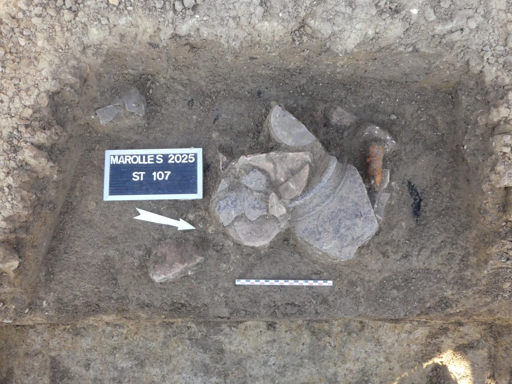 Les fouilles archéologiques menées sur le site de Marolles (51) – Lieu-dit « La Flûte », rue de la Violette ont été réalisées par le bureau d’études Éveha, sous la responsabilité de Nicolas Loew, dans le cadre du projet d’aménagement porté par le Groupe Firalp. Les investigations archéologiques ont permis de mettre au jour des vestiges dont les datations vont du Néolithique à l’Époque moderne.