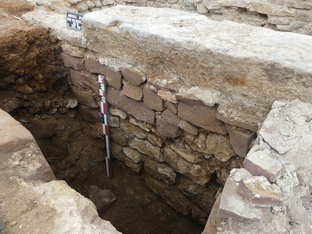 La fouille d’une cave voûtée a permis d’identifier les vestiges de la chambre de la roue, représentée sur le cadastre napoléonien.