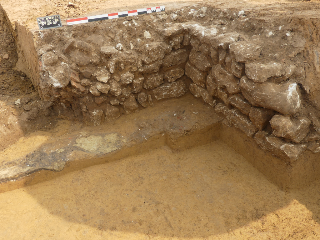 Les fouilles archéologiques menées sur le site de Noyon (60) – Secteur 2_S2-T030 – MS4 du lot 3 de l’AC du Canal Seine Nord Europe (Fouille K) ont été réalisées par le bureau d’études Éveha sous la responsabilité de Hakim Derradj dans le cadre du projet d’aménagement porté par la Société du Canal Seine-Nord Europe (SCSNE). Les investigations archéologiques ont permis de mettre au jour des vestiges datés de l’Antiquité, du Moyen Âge et de l’époque contemporaine.