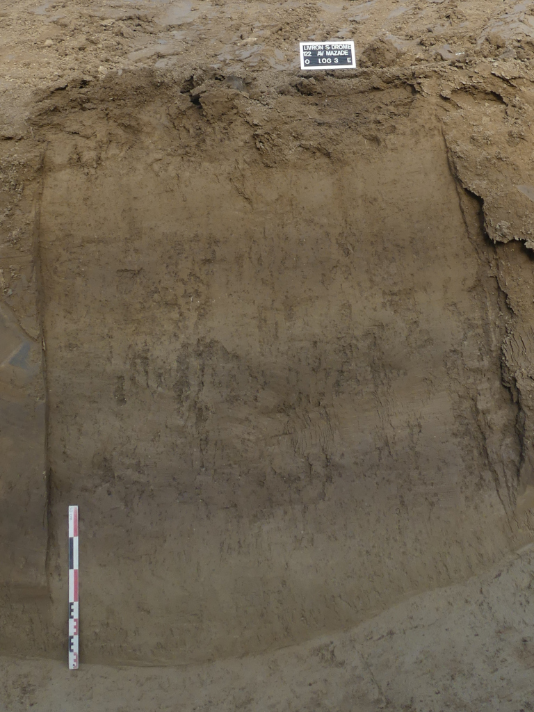 Les fouilles archéologiques menées sur le site de Livron-sur-Drôme (26) – 112 avenue Albert Mazade ont été réalisées par le bureau d’études Éveha, sous la responsabilité de Gwenaëlle Grange, dans le cadre du projet d’aménagement porté par SNC LIDL Direction Régionale de Pontcharra. Les investigations ont mis en évidence, sur une surface de