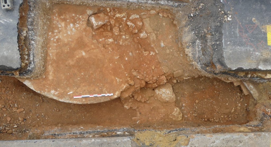 Cette opération d’archéologie préventive était la première à associer une prospection géo-radar réalisée avant un suivi archéologique archéologique des travaux. Le suivi a ainsi permis de confirmer les vestiges repérés et certaines interprétations proposées dans ce cadre. Il a également permis d’apporter des indices supplémentaires non repérés lors de la prospection géo-radar, probablement en raison de la nature du sol et de ses remblais. Ce suivi de travaux a montré que les observations réalisées sur le terrain étaient nécessaires, tant pour la mise au jour des structures que pour leur interprétation.