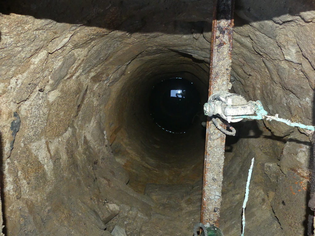 Le premier ensemble situé dans l’actuelle cour de la cité administrative semble traduire une occupation moderne. Selon l’historiographie, les Filles de Notre-Dame de Limoges viennent s’installer dans un couvent construit à partir de 1654 par Claudine de Dreux. Aucun vestige antérieur à l’Époque moderne n’a été observé, chronologie relative révélée par les tessons de céramiques présents dans les couches. La localisation de la tranchée de fouille a permis d’atteindre la délimitation entre le jardin et la « galerie » nord du cloître. Celle-ci se traduit par la présence de deux maçonneries, orientées sur un axe nord-ouest – sud-est. Un niveau de circulation semble fonctionner avec, illustrant le niveau initial d’occupation de la zone. Cet ensemble s’installe sur des remblais hétérogènes, ayant probablement servi de nivellement pour l’installation du couvent. Recouvrant les deux maçonneries, plusieurs épaisseurs de remblais sont déposées dont certains niveaux correspondent à du béton, aménagés à la période contemporaine. Plus à l’ouest et en lien avec le couvent, un puits a été rencontré. Ce dernier conserve deux phases d’aménagements. La première pourrait être associée à la période moderne. Cela est représenté par le creusement plutôt circulaire de la partie centrale de l’aménagement, surmontée par une margelle en moellons granitiques équarris (Fig. 4). La seconde est à rattacher au 20e s. par la mise en place d’un coffrage en béton au-dessus de la margelle en pierre. Des tuyaux ont été employés, recoupant l’ancienne construction en pierre.