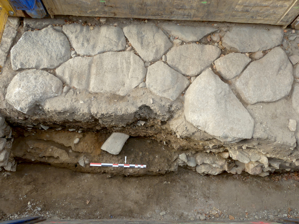 Enfin, au cours de nos suivis de travaux menés en parallèle de la fouille, d’autres données très intéressantes concernant l’histoire de ce quartier périphérique de la ville (situé immédiatement au sud des remparts antiques) ont été collectés, notamment à l’occasion de la réfection de la galerie du Saint-Gervais. Plusieurs ponts enjambant le ruisseau ont ainsi été mis en évidence, tant au niveau de la rue Boson (ancienne porte d’Avignon) que du cours Romestang. Leur datation demeure à préciser, mais ils remontent au moins à la période médiévale et potentiellement, au moins au niveau de leurs substructions, à la période antique. Ces monuments totalement inédits permettaient le franchissement du ruisseau et l’accès à la ville enfermée derrière ses remparts. La présence d’éléments en bois associés à l’une de ces constructions permettra, nous l’espérons, de les dater assez précisément.