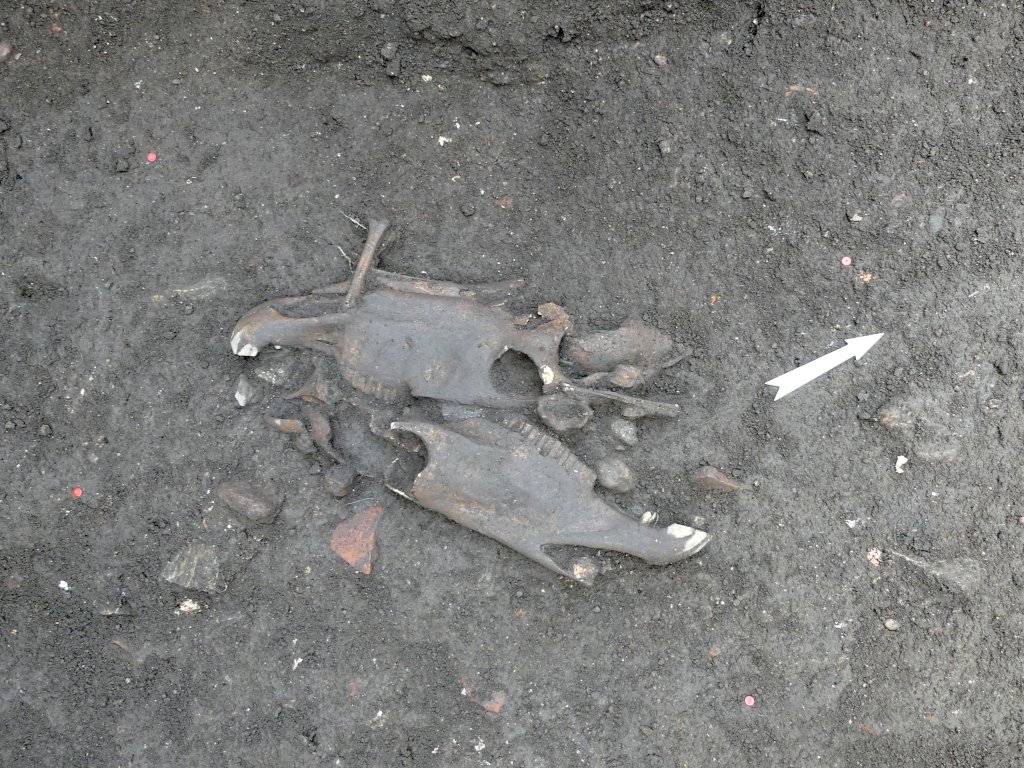 À l’ouest de cette voie, longée par un fossé, se développe un quartier plus modeste, composé, en façade sur rue, par des pièces au sol de terre battue et à l’architecture en terre et bois. L’incendie de ces bâtiments (incendie qui n’a pas épargné le grand bâtiment maçonné à l’est de la voie), a permis la préservation d’un niveau de sol avec tout l’équipement des habitants et, notamment, un meuble avec tout son mobilier. Un chien s’est pareillement retrouvé piégé dans la pièce pendant l’incendie.