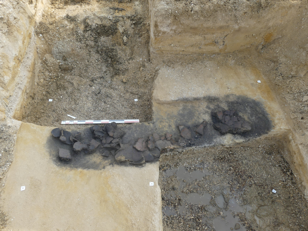 Fig.2 : Fosse et épandage de céramique. Crédit : Eveha, 2025.