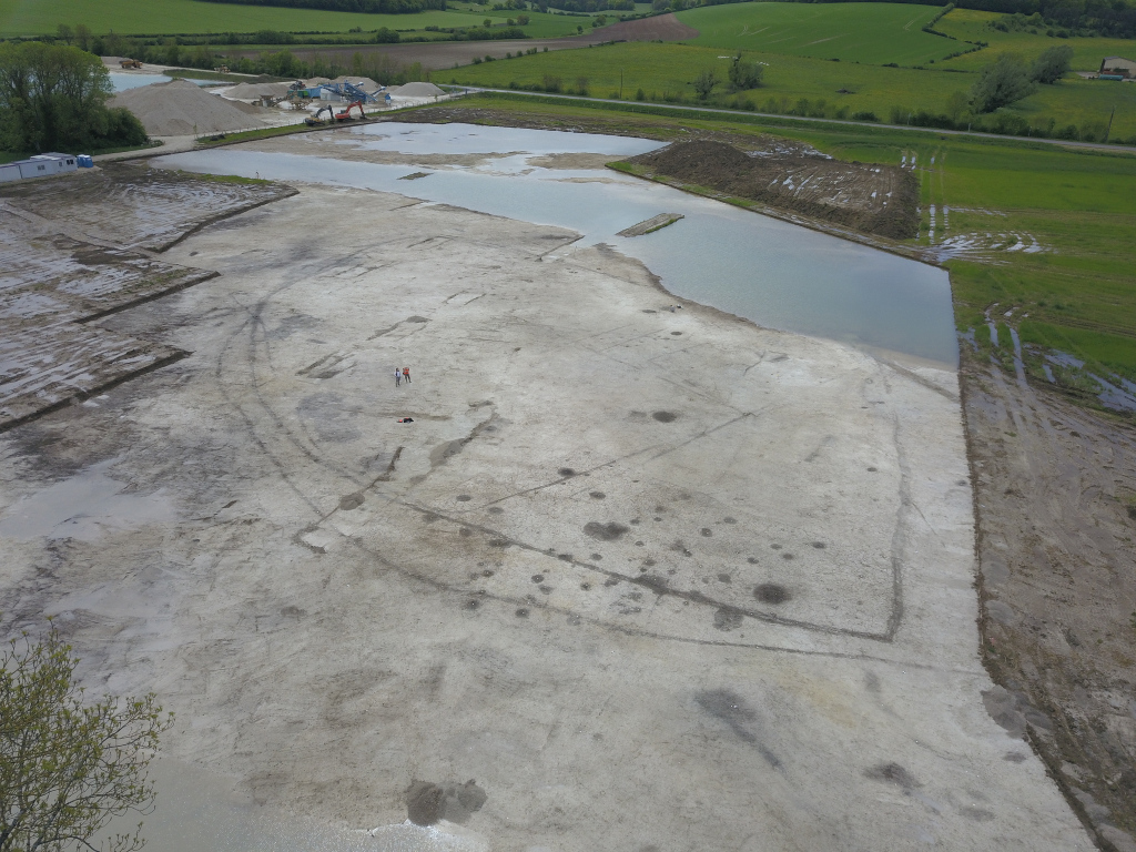 La fouille archéologique de la parcelle située au lieu-dit « Le Magoulot », sur la commune de Lanty-sur-Aube (52), s’est déroulée au printemps 2024 sur une superficie de 25 000m², sous la direction d’Émilie Morin, préalablement à l’extension de la zone d’exploitation de la carrière de granulats par la société André Boureau. Cette opération a permis la mise au jour d‘une occupation du site au cours de la Protohistoire et des indices de fréquentation jusqu’au Moyen Âge.